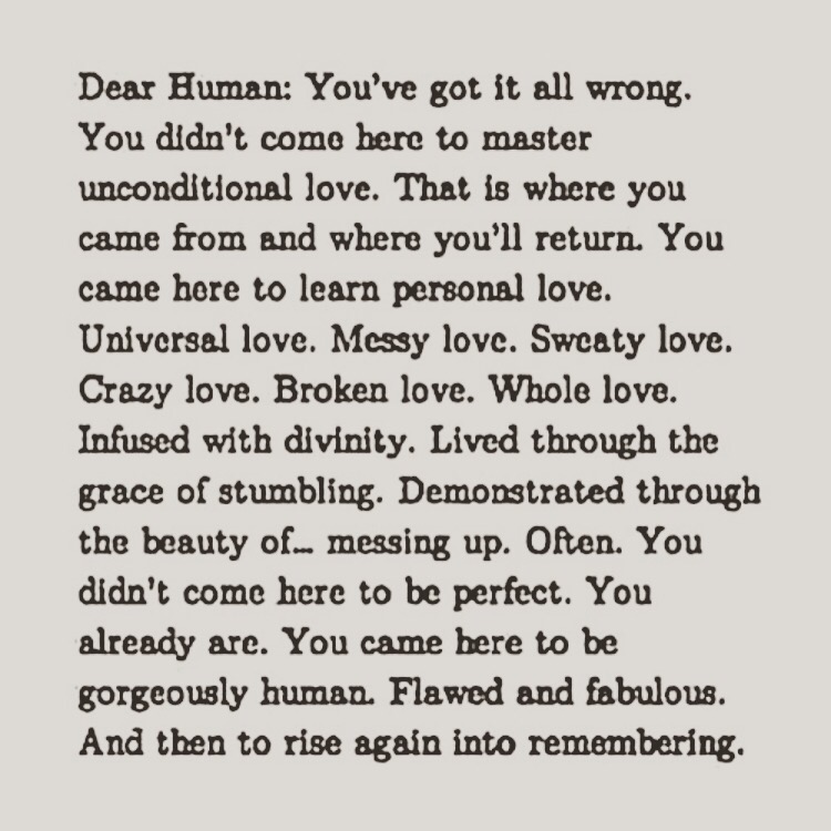 I thought this was beautiful, sometimes we need to read these and remember we all human.